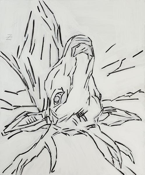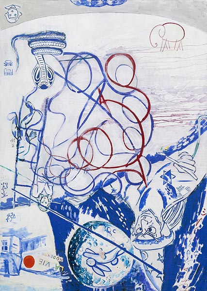 盛天泓就是这样一个旁观者,冷静隐忍旁若无人,物必有专攻,在绘画的耙犁中,他无疑也是最老辣的猎手,就像作品中被肆意打破的界限,对于不需理解的艰涩,以及对叙事的无视和偏见,对无望误读之迷恋,缺失的语句,欲隐还现的草稿般的复线,看似荒芜的画面布满玄机,美妙之物偏偏喜爱以曲折的方式呈现,一切便都显得迷雾重重。有的只是守株待兔,若有其事的等待高手间刹那的电光火石般的过招,逼格高悬的作品,蕴含的是最艰涩的喜悦,非明眼人不能揣其端倪。